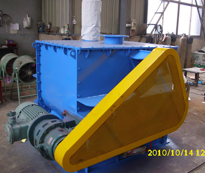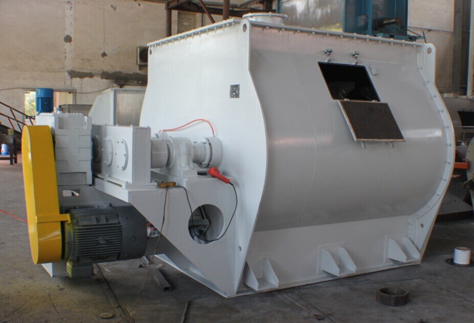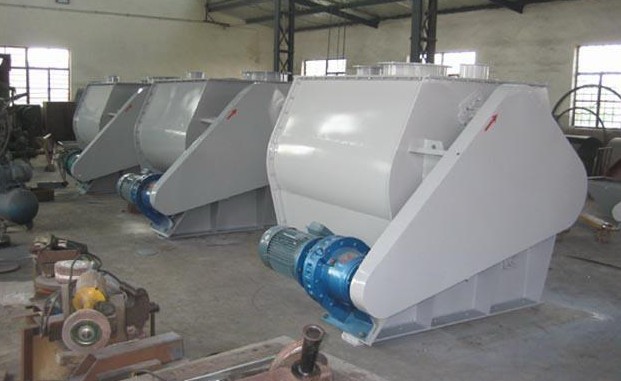 本系列混合機(jī)以強(qiáng)烈、高效混合為特點(diǎn)、臥式筒體內(nèi)兩根攪拌等速反向旋轉(zhuǎn),上特殊布置的槳葉確保物料徑向、環(huán)向、軸向三向運(yùn)動(dòng),形成復(fù)合循環(huán),在極短的時(shí)間內(nèi)達(dá)到均勻混合。